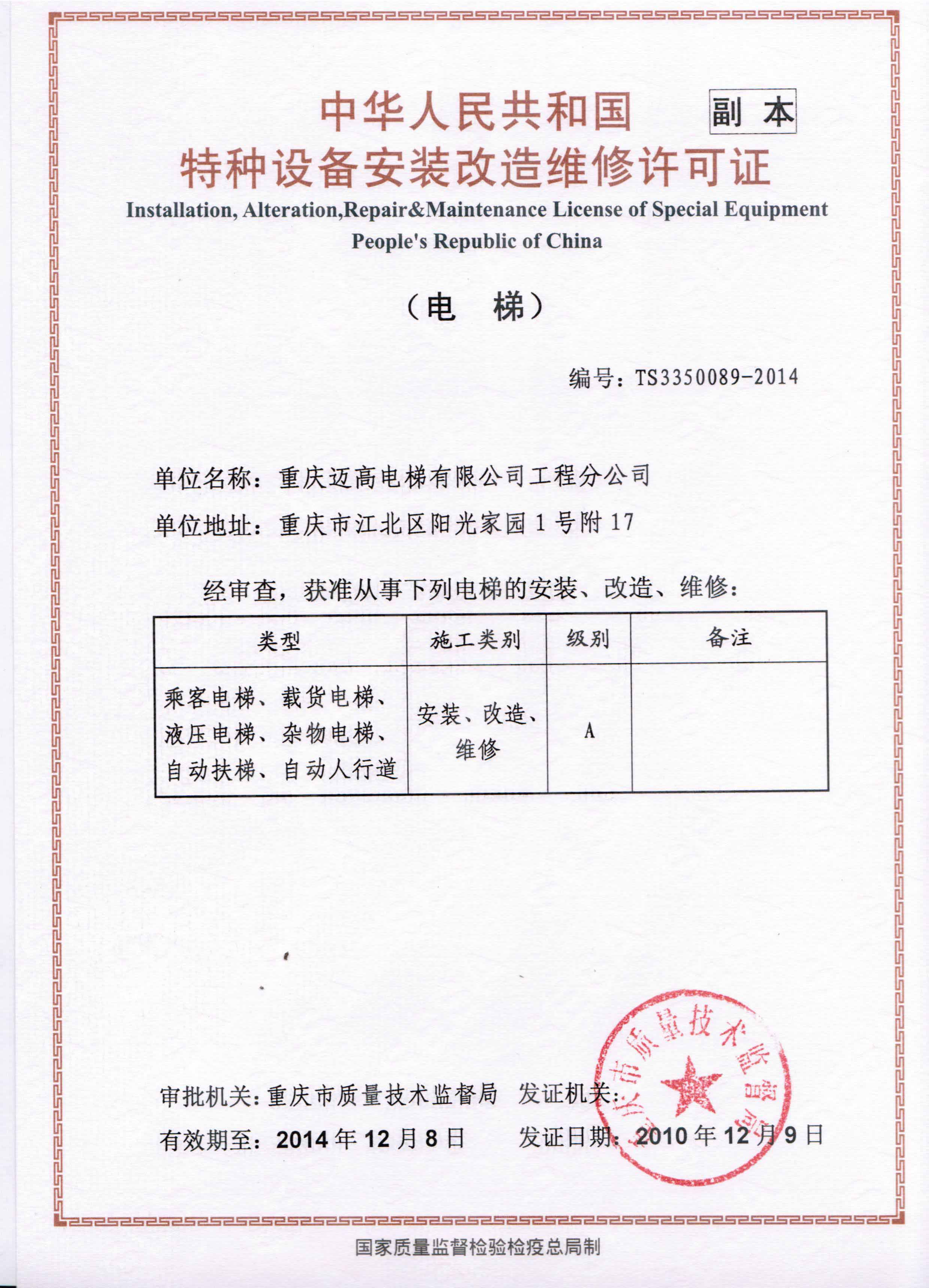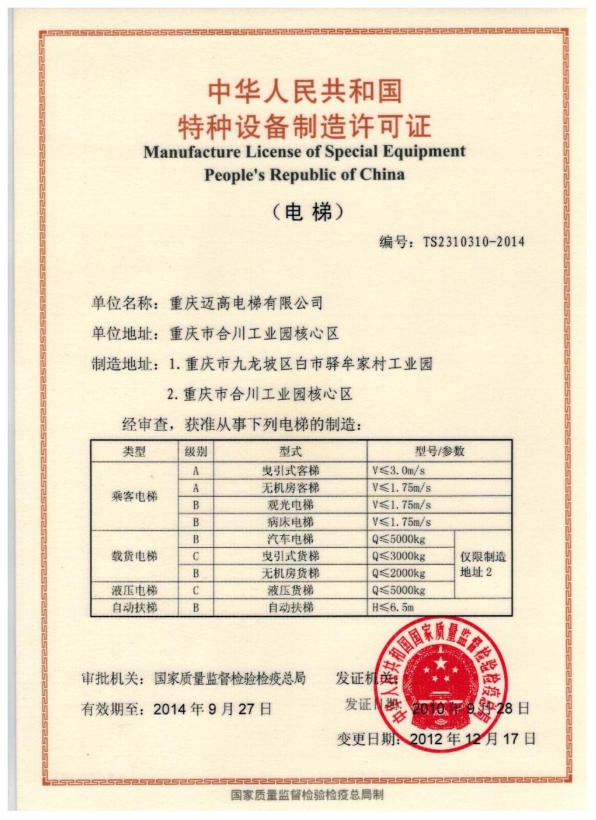 歡迎訪問(wèn)重慶邁高電梯有限公司!